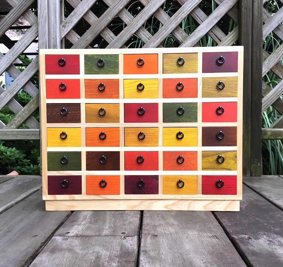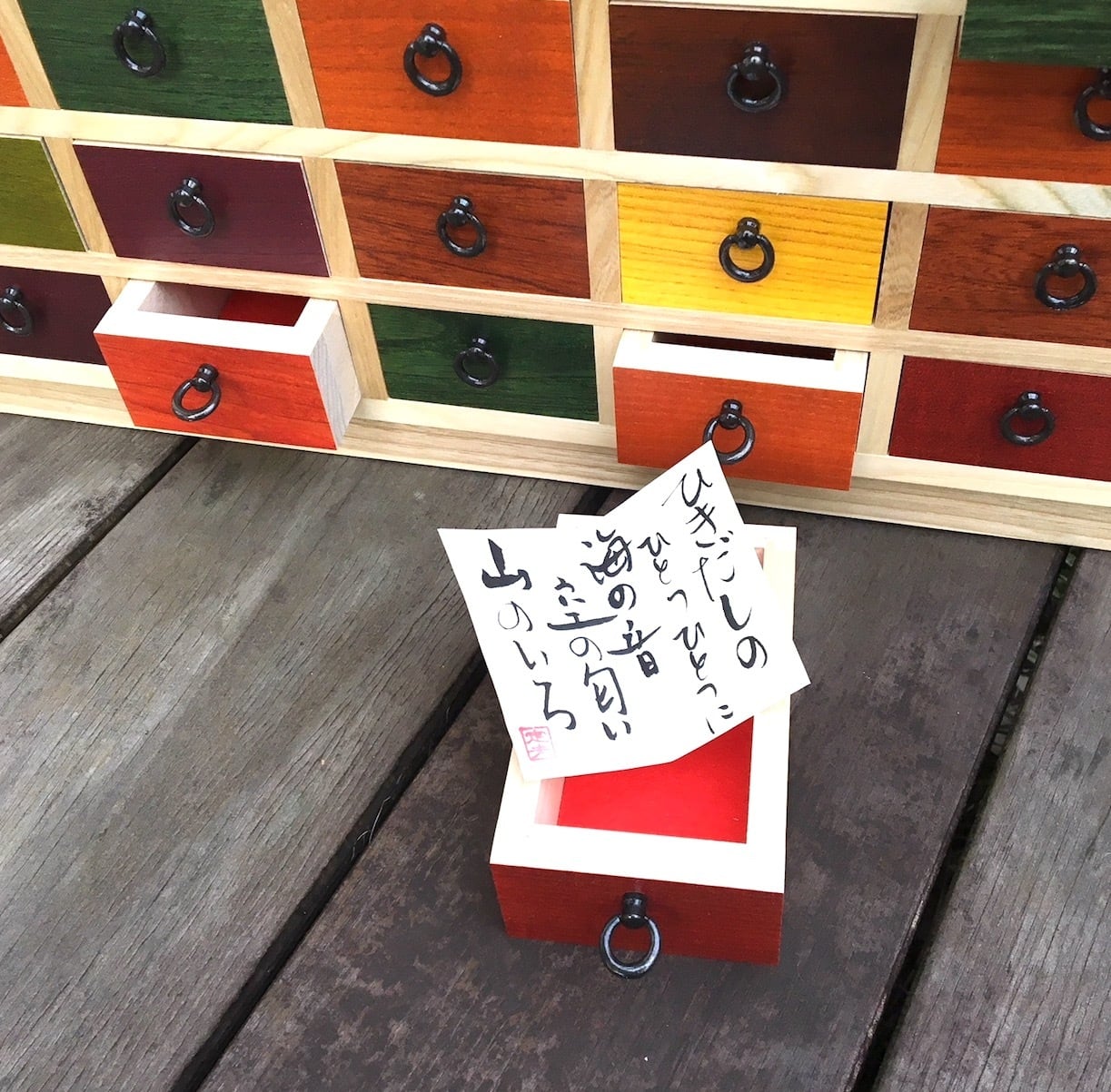 本当は100個の引き出しのものを作りたかったのですが、重たくなりすぎると木工所から却下されてしまいました。