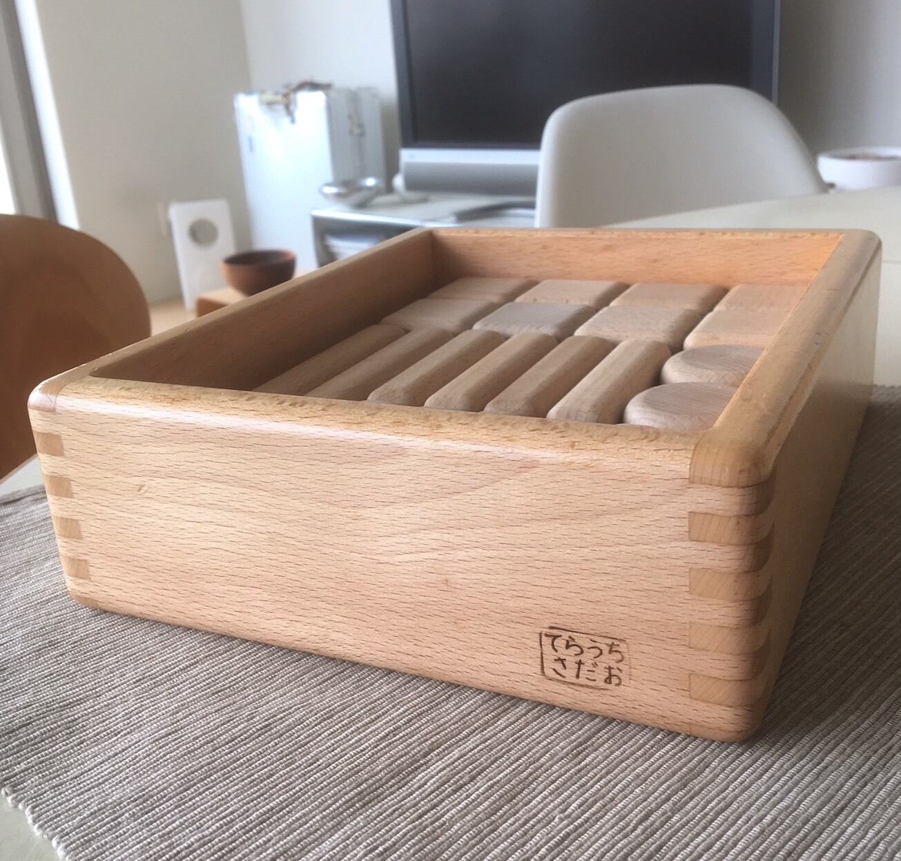 中古のブナのあかちゃんつみきを磨き直しきれいにリペアしました。