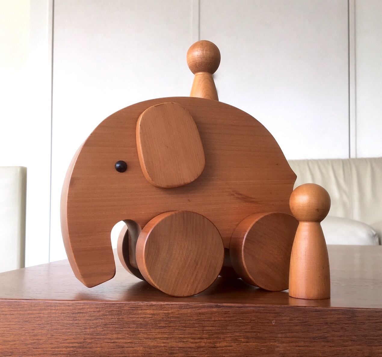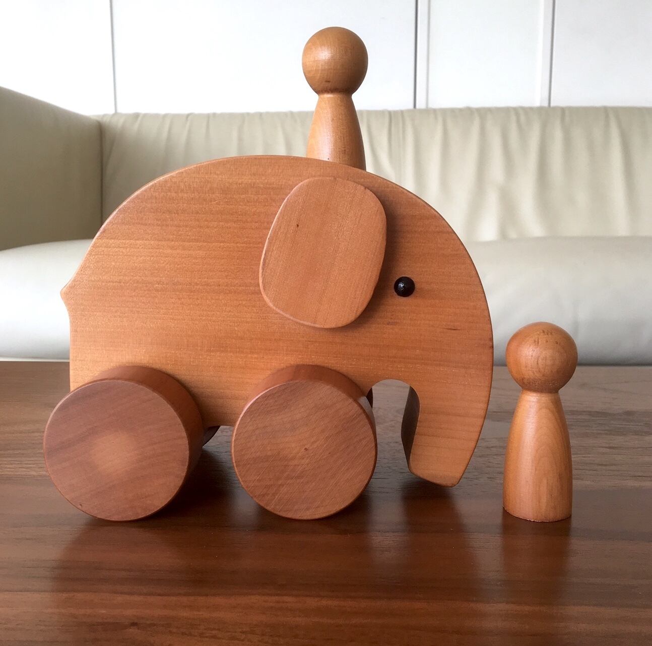 北海道産カツラ材で作っていた頃のゾウの木のおもちゃ。