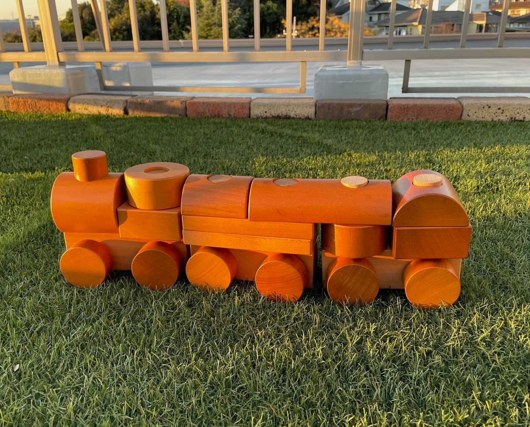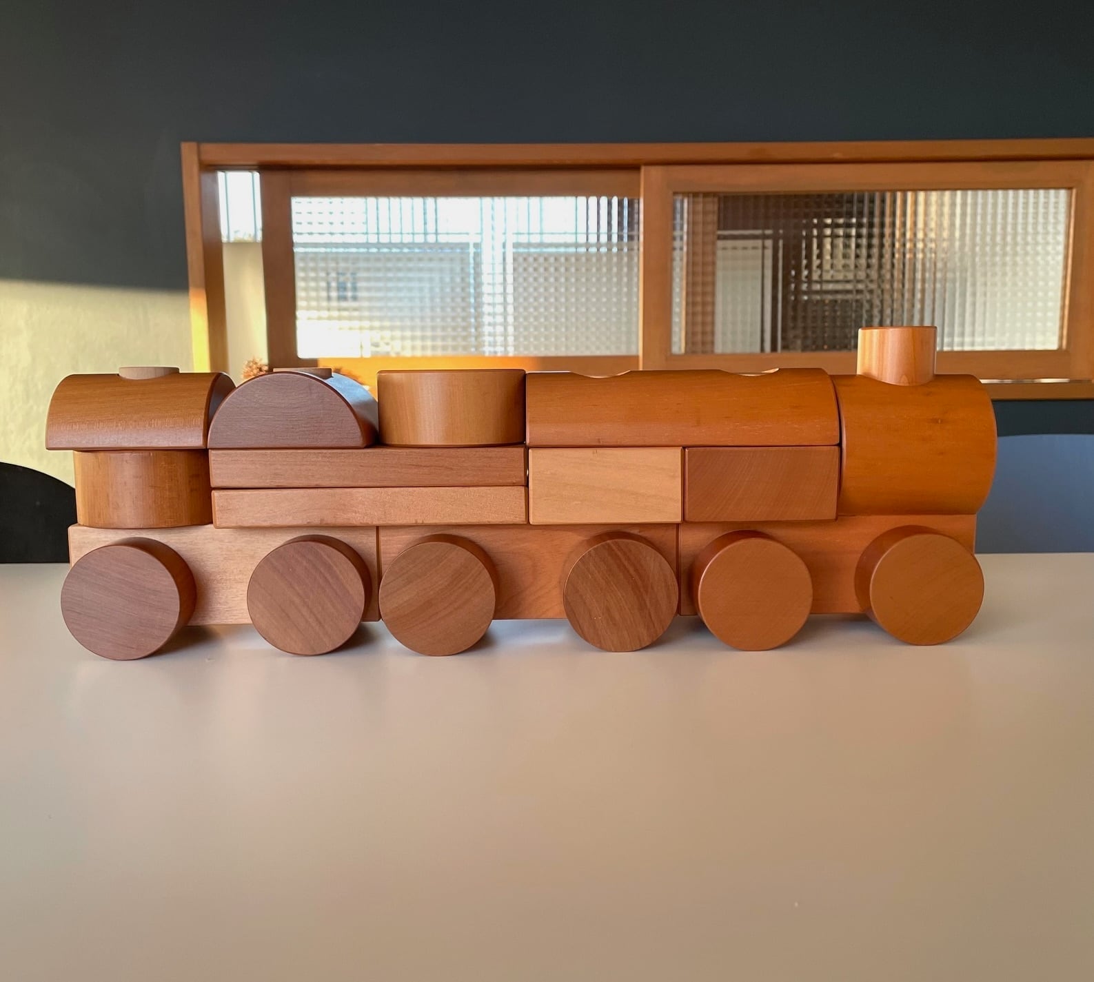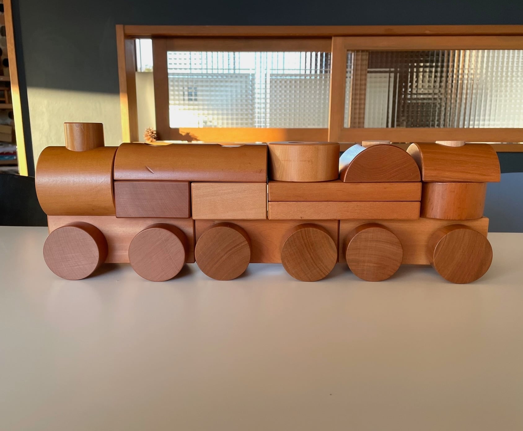 こちらは、1990年前後くらい、35年前後アトリエに長期保管していた汽車つみきです。