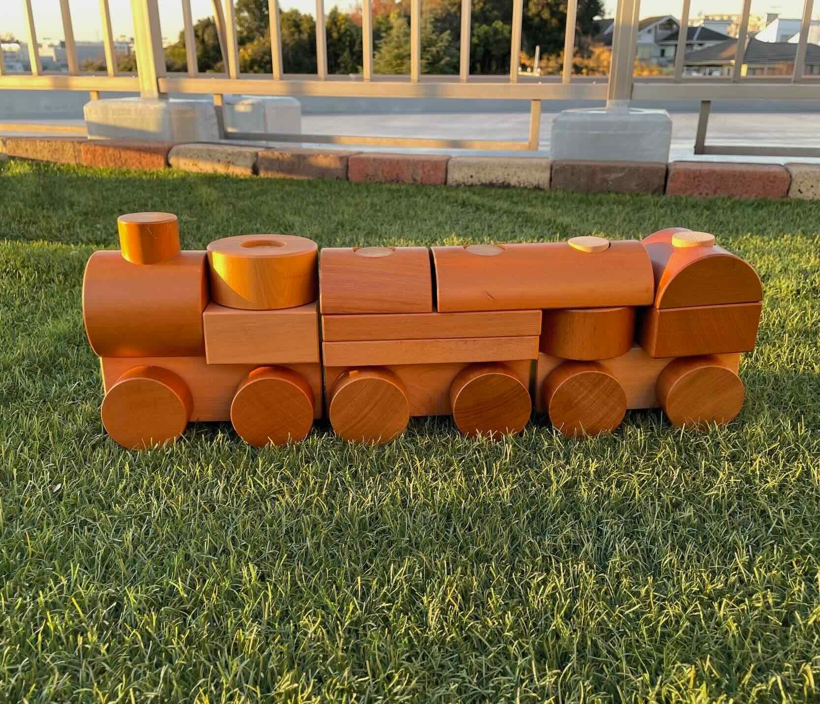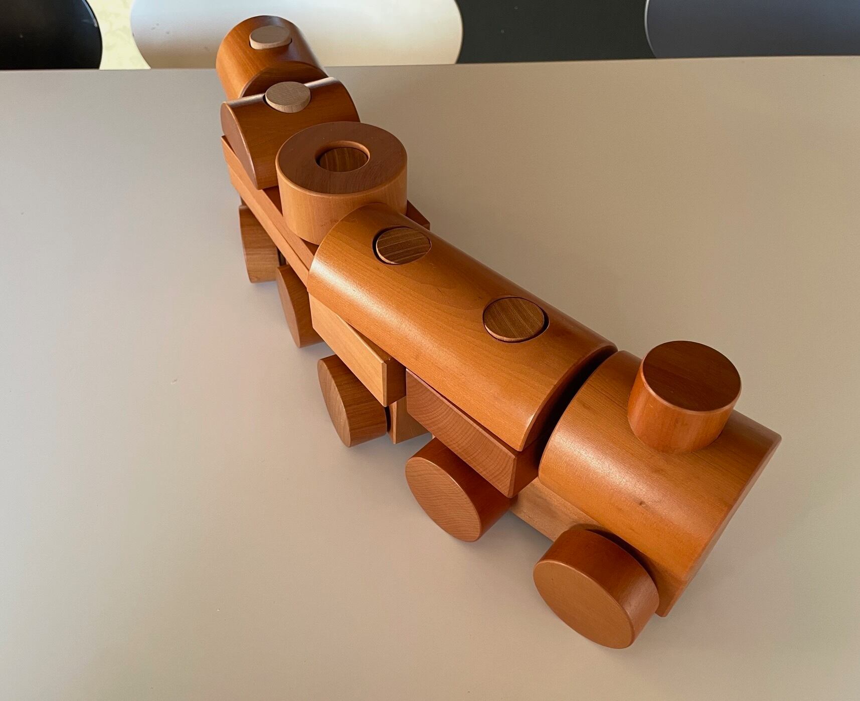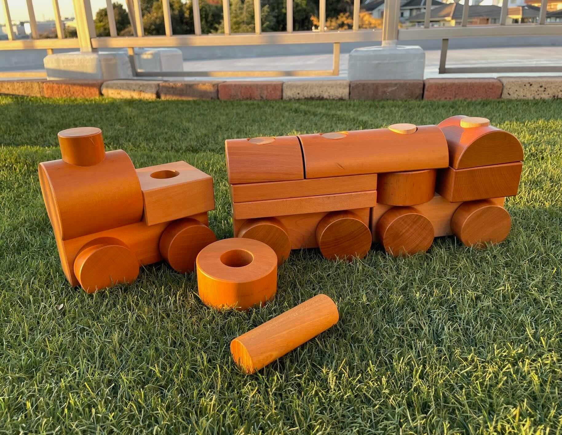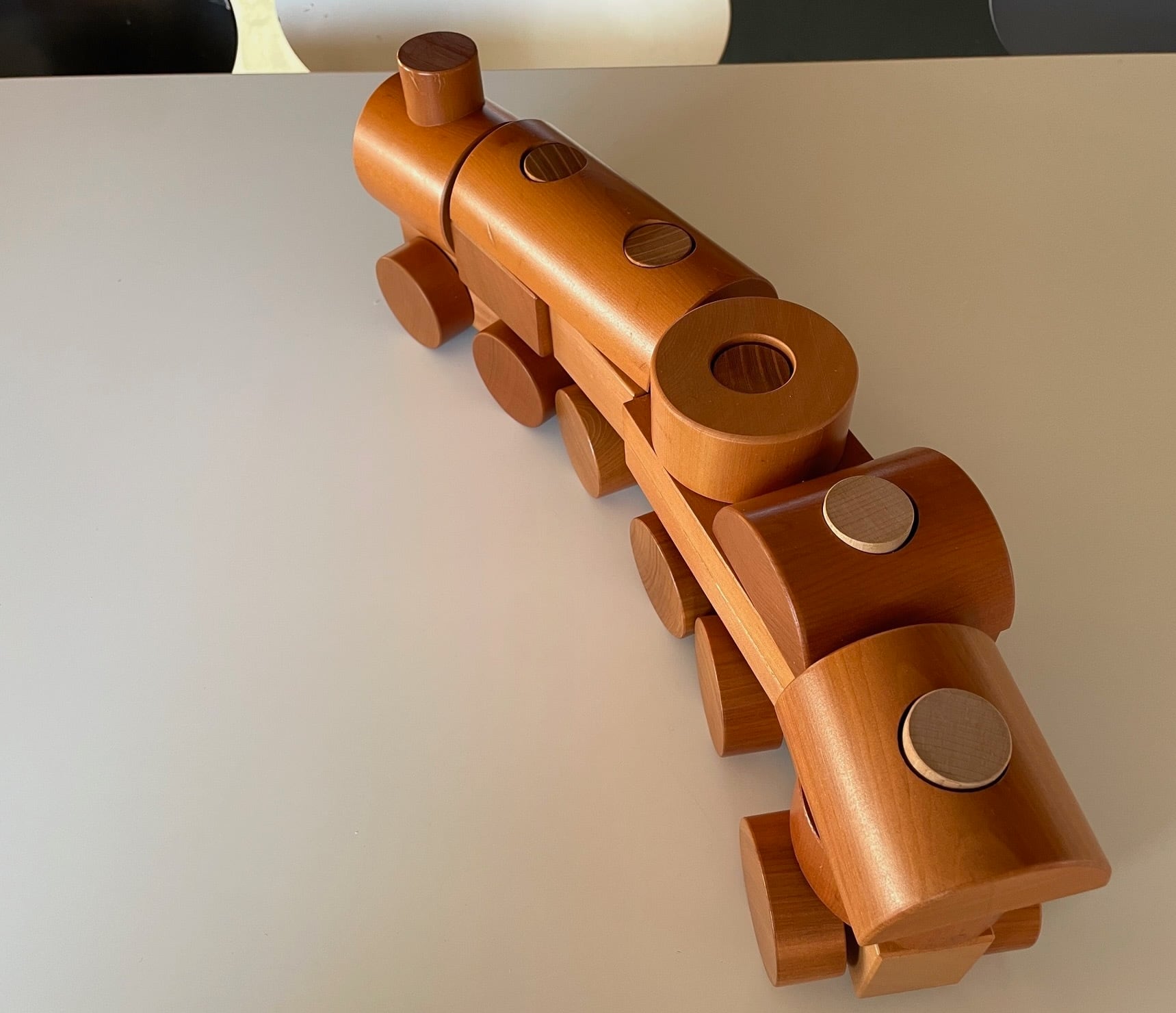 こちらは、1990年前後くらい、35年前後アトリエに長期保管していた汽車つみきです。