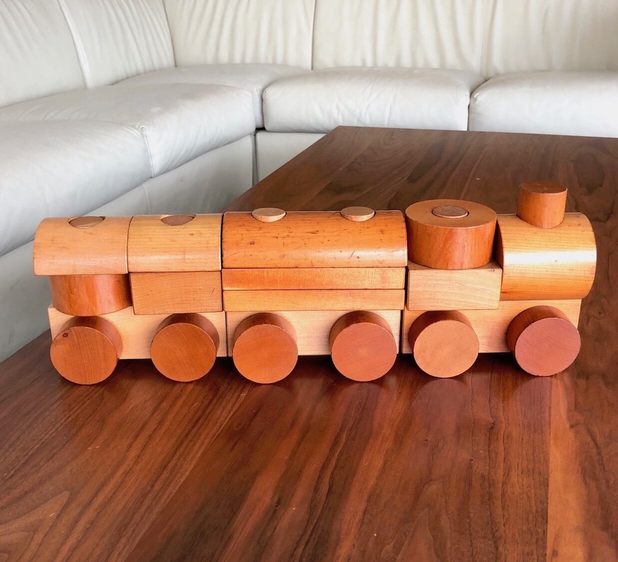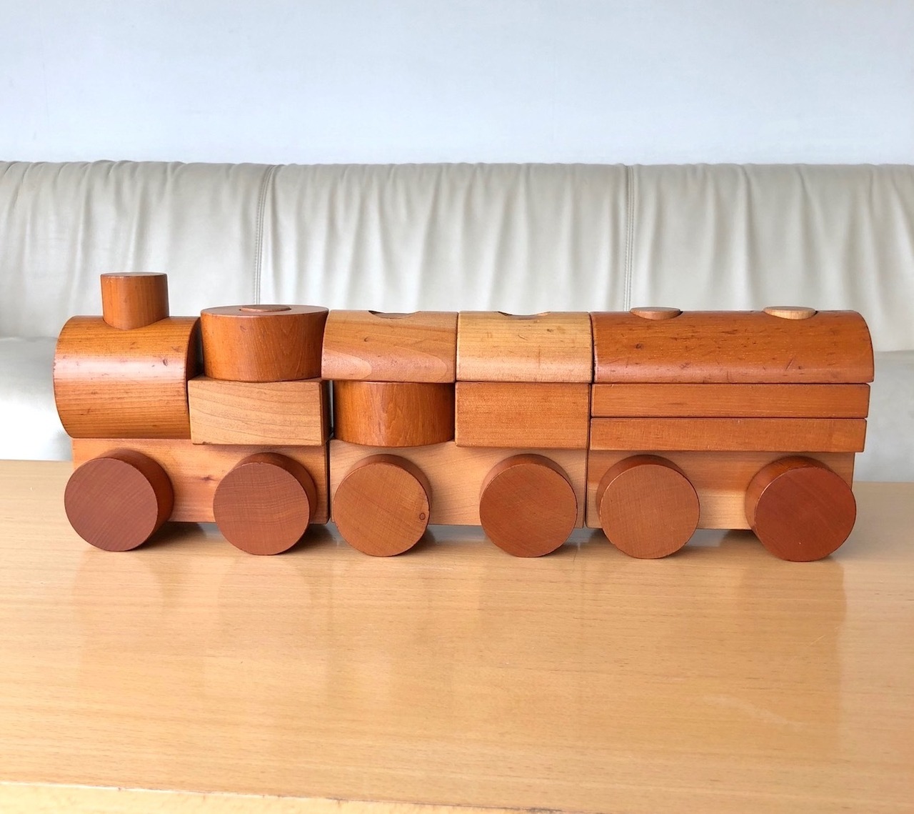 1965年度、玩具として初の日本グッドデザイン賞を受賞した汽車つみきの、中古リペア品です。