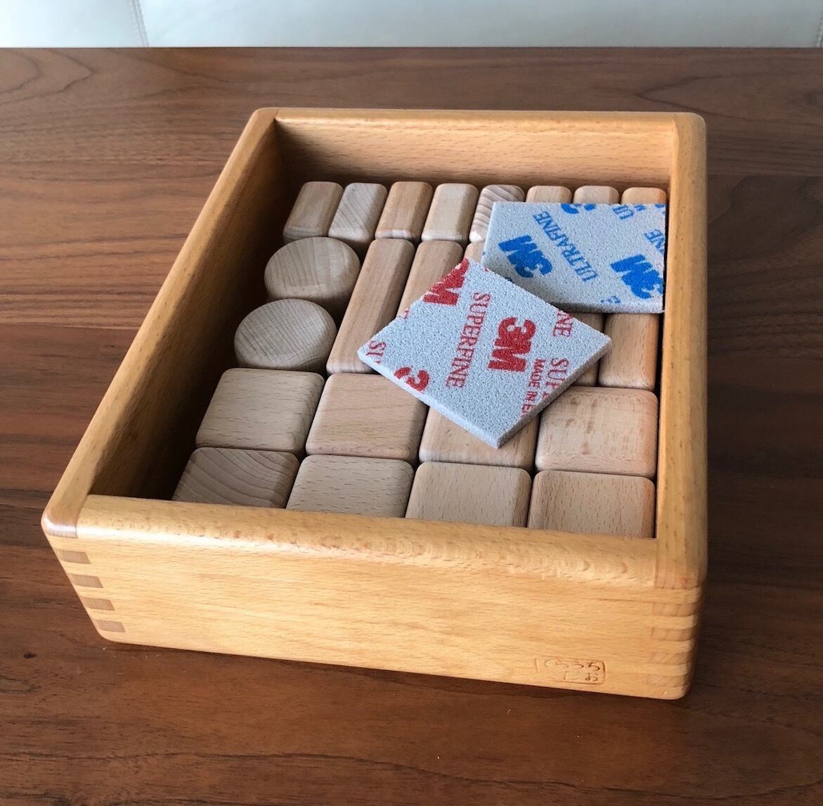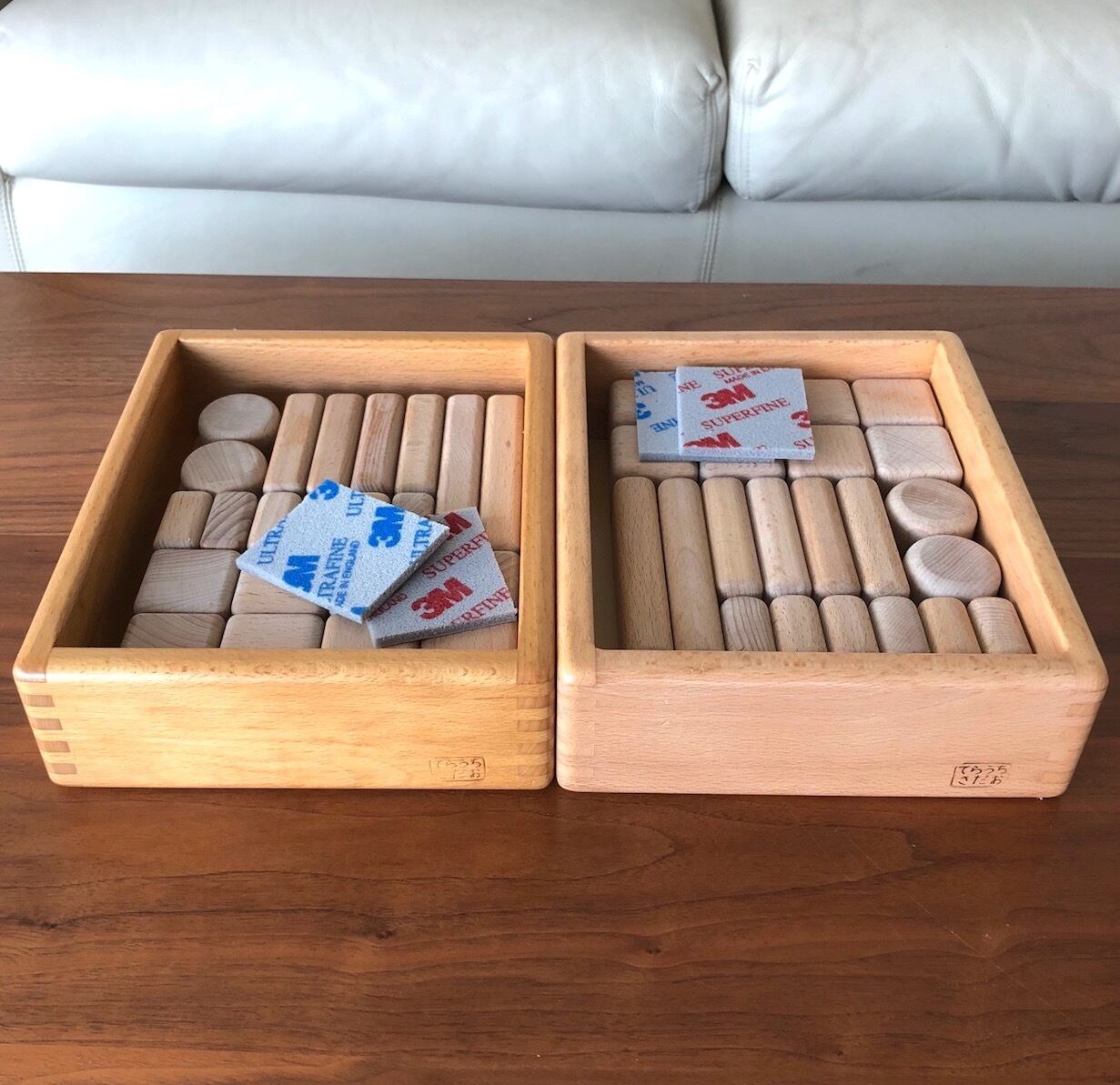 22個のつみきは全てサンドペーパーで磨き直したので、とてもスベスベです。