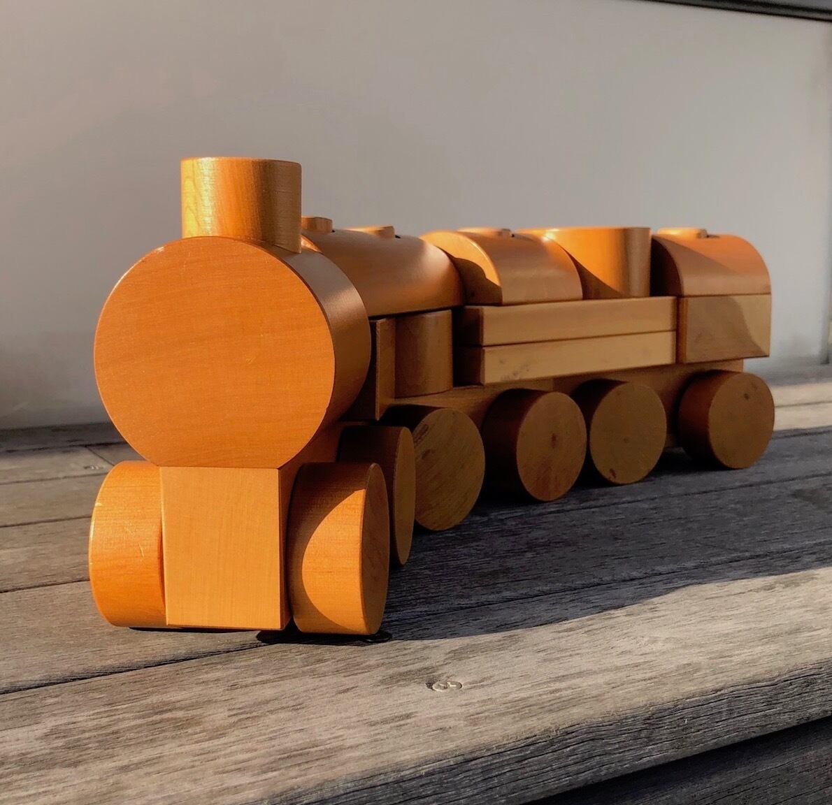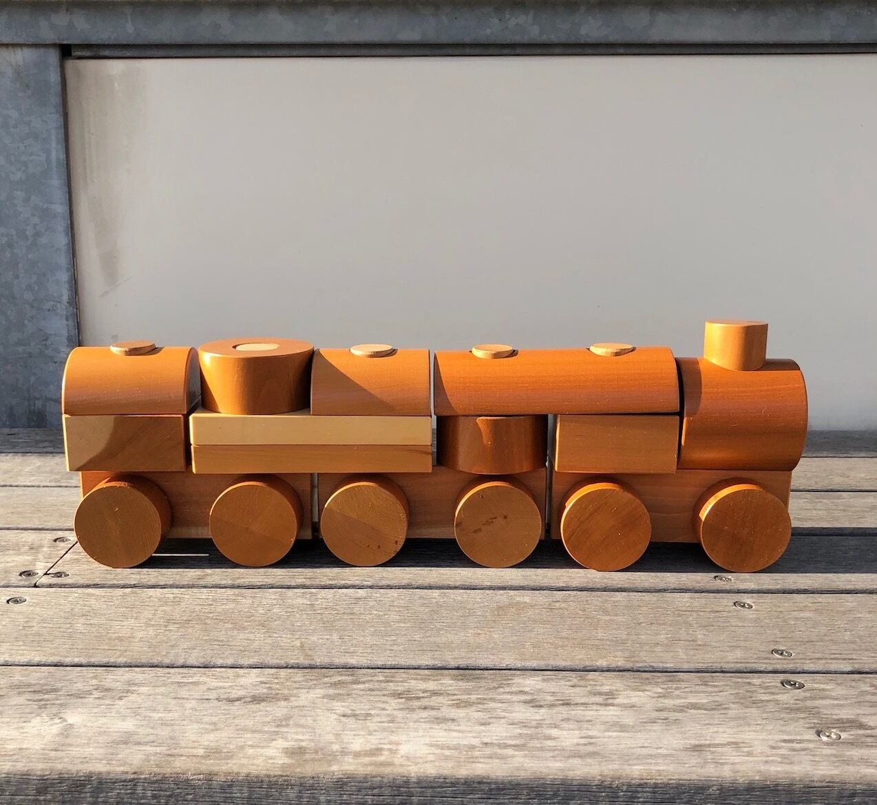 ヴィンテージ、とまではいかないおよそ30年前後前、1990年頃に制作された汽車つみきのグッドコンディションの未使用品です。