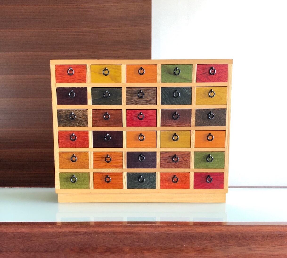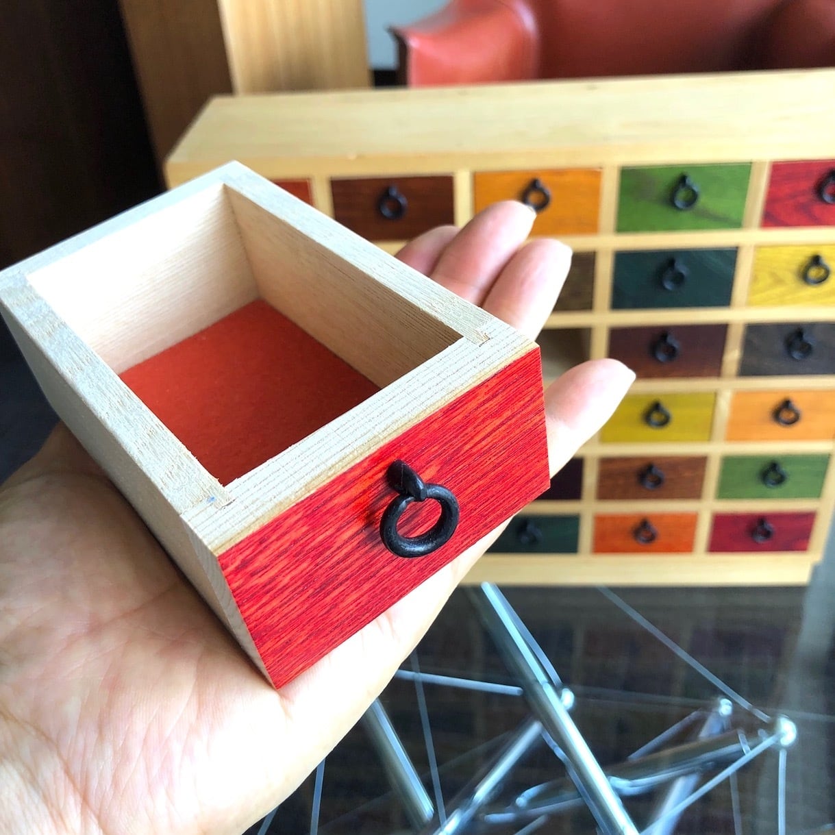 小さなひきだしのおもちゃは、寺内定夫が「思い出をしまうひきだし」としてこだわってデザインしたもの。