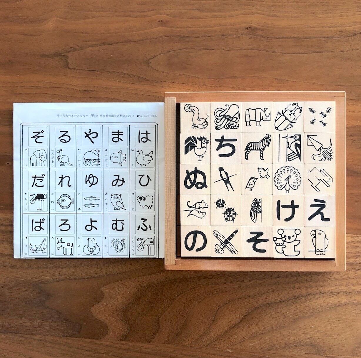 ひらがなつみきの最高傑作「動物いろはつみき」の小さいサイズの保管品です。