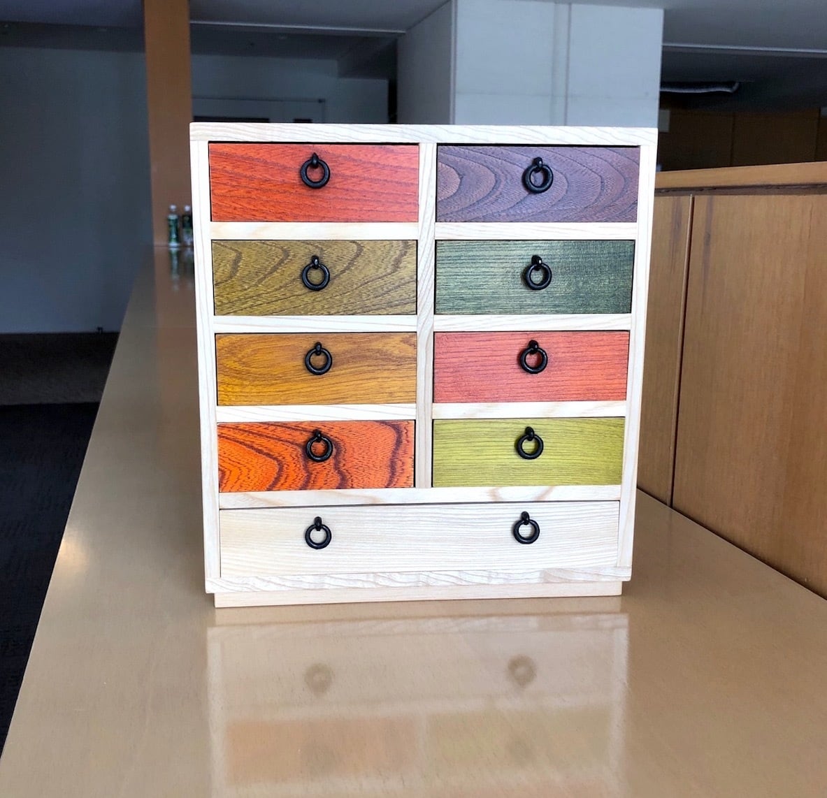 9つのひきだし8カラー 北海道産センの木 経年美化 未使用アトリエ保管品