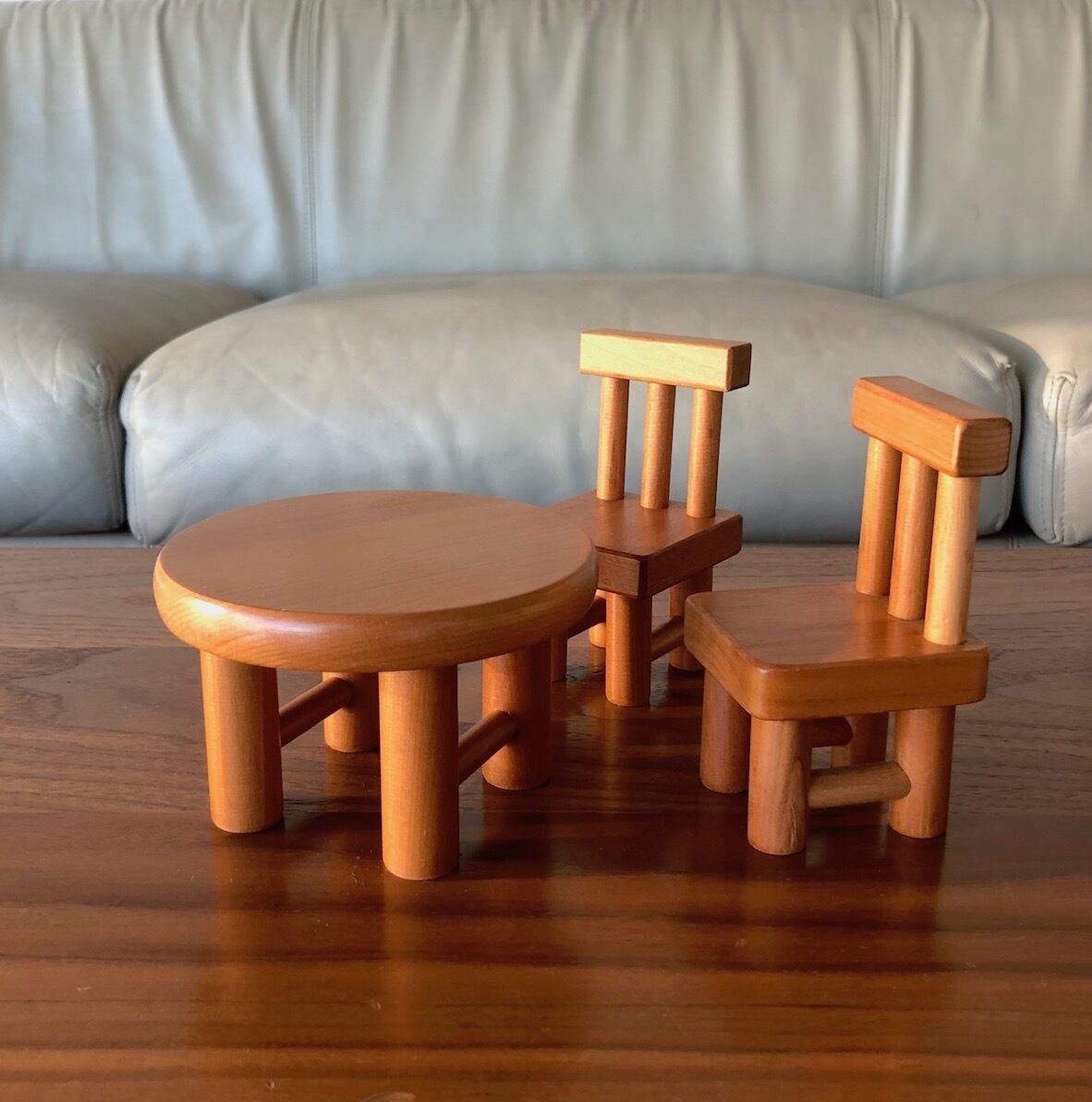 ごっこのイスと丸テーブル 北海道産カツラ材 アトリエ保管品