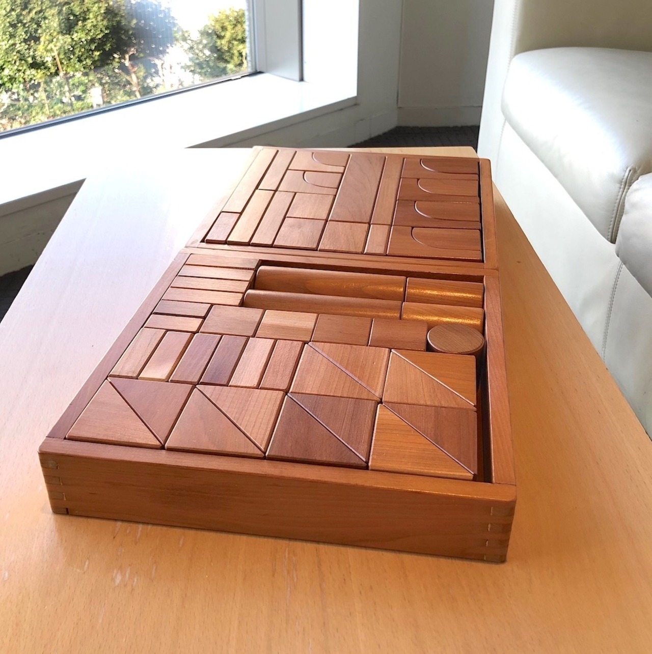 およそ40年前後、制作から時が経過していますが、木箱に若干経年のしみなどが見られますがつみき自体は傷も少なく大変良いコンディションです。