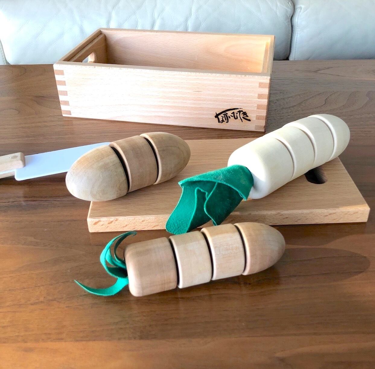 大根はミズキ、人参とおいもはサクラの木の無塗装仕上げです。