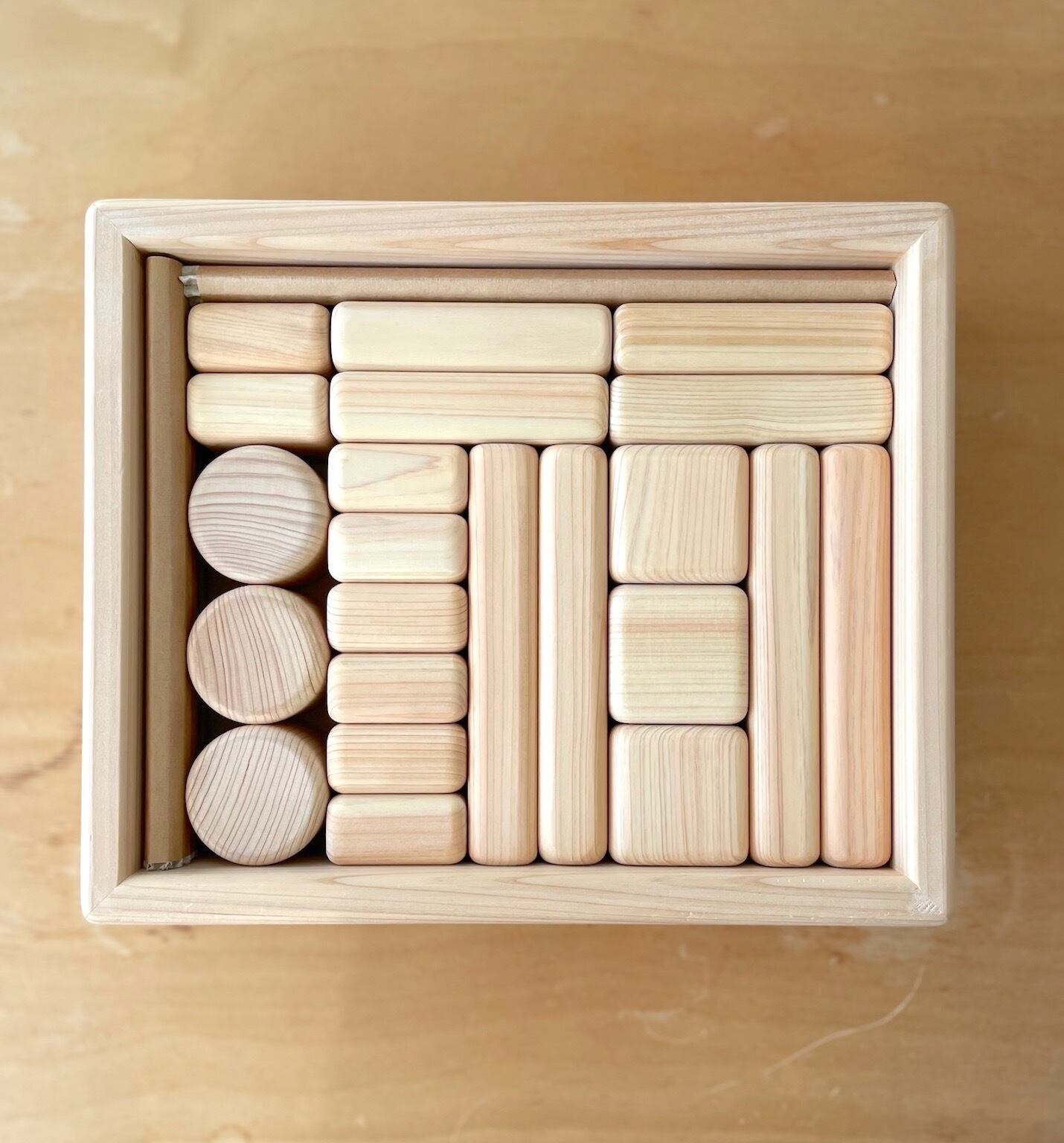 諸戸百年檜のあかちゃんつみき 檜箱入り22個セット 大変美しいセットです !