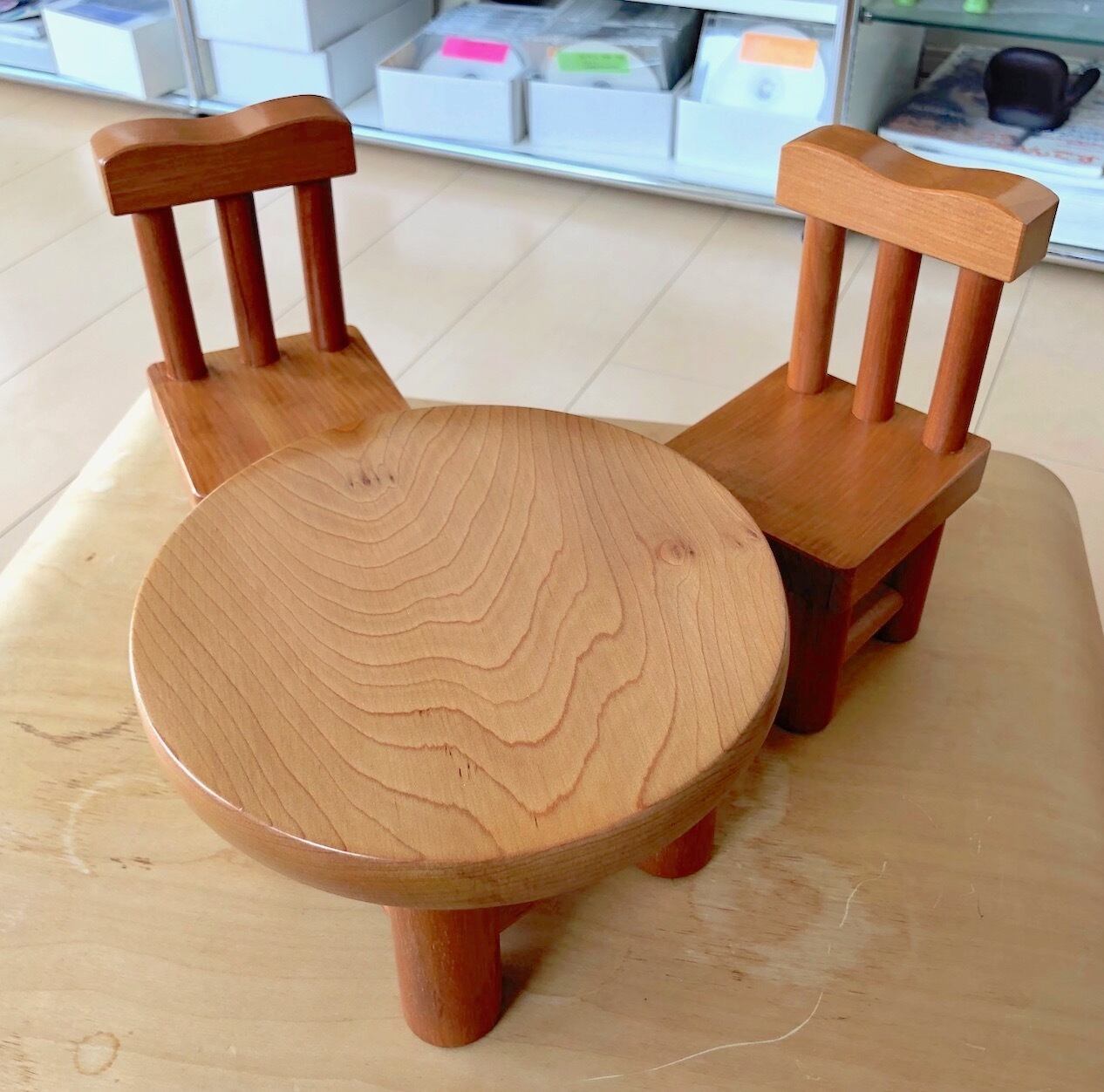 イスと丸テーブル(北海道カツラ材)未使用保管品 ヴィンテージ