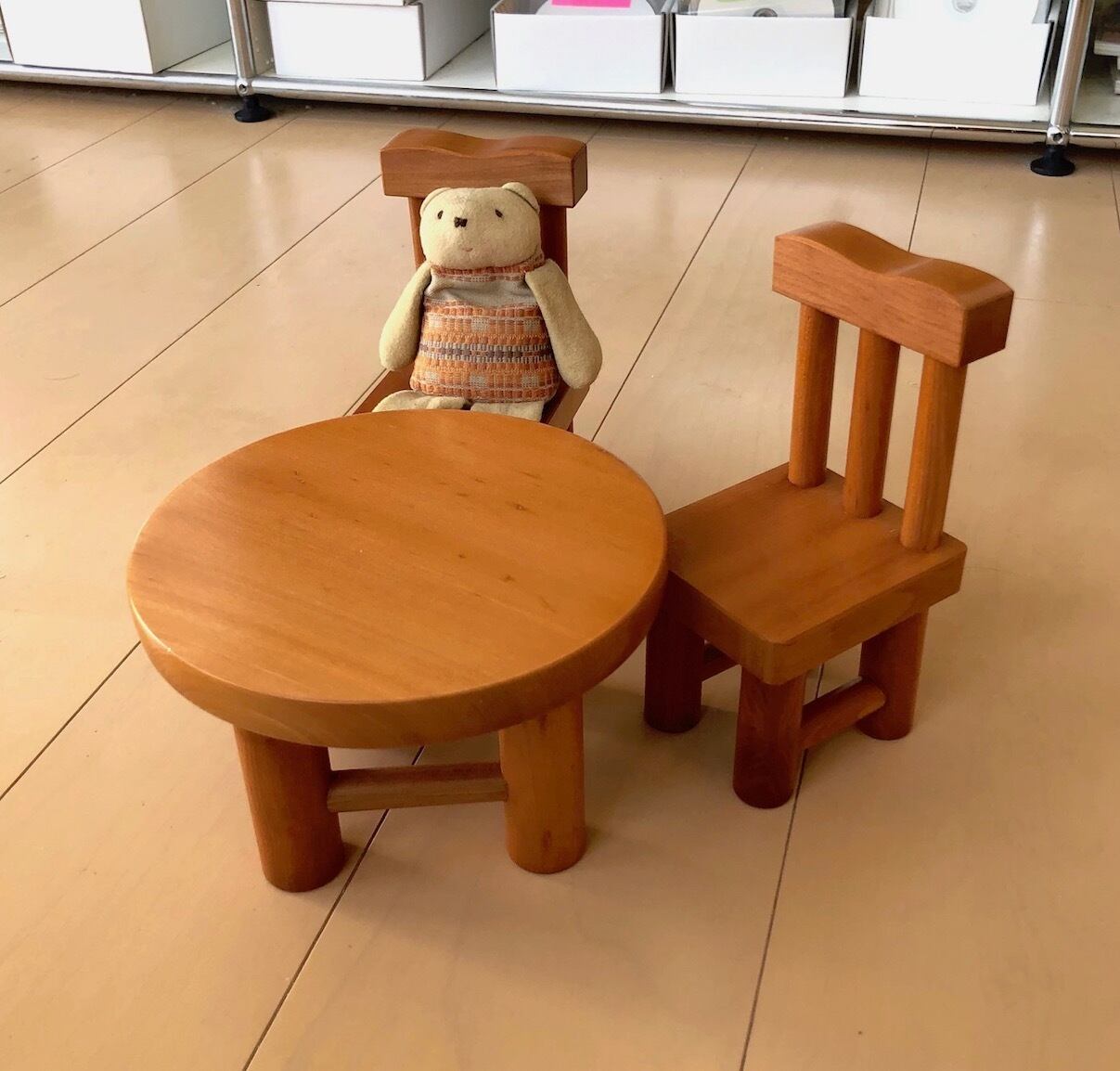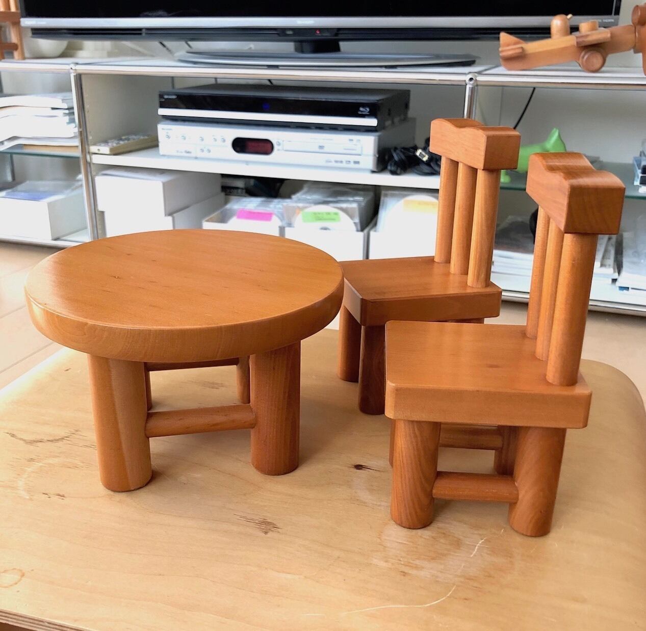 イスと丸テーブル(北海道カツラ材) ほとんど使用感のない中古リペア品 ヴィンテージ