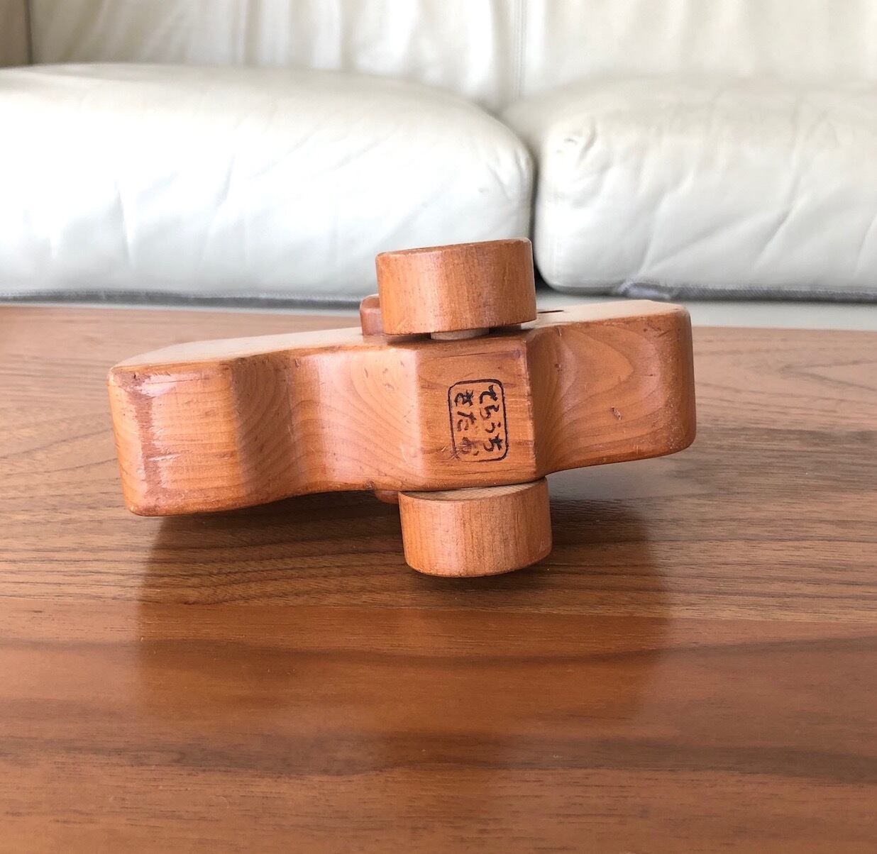 このような押しぐるまのおもちゃは、車軸が金属のものが多いですが、こちらは全て木で作っています。