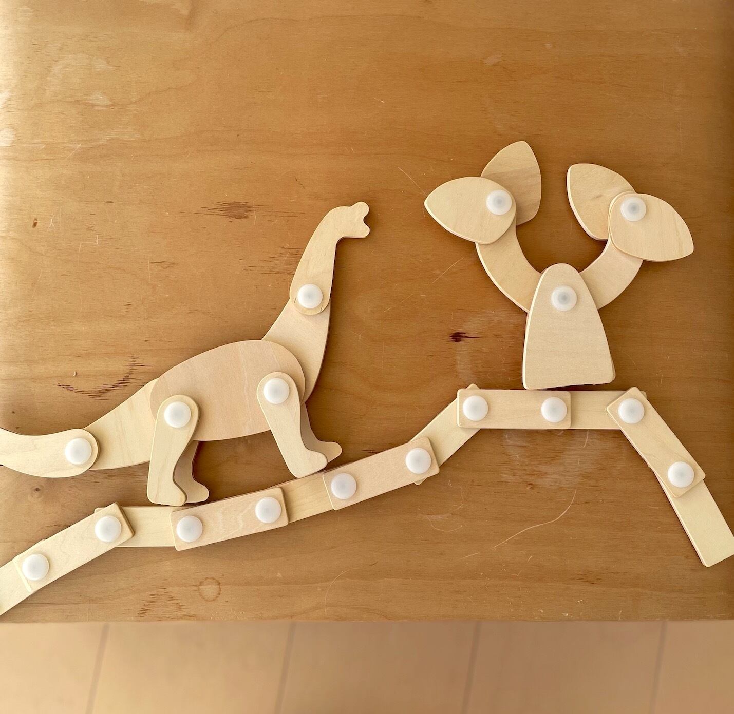 恐竜、ヒョウ(ピューマ)、木、折り尺の五点セット。
