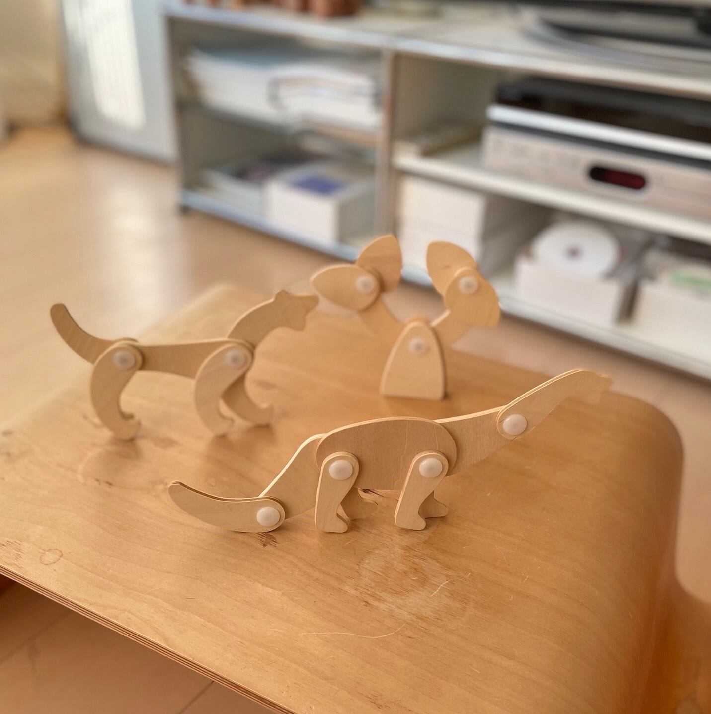 折りたたんだ状態では、はてな?というかたちなのですが、開いていくと恐竜になっていきます。