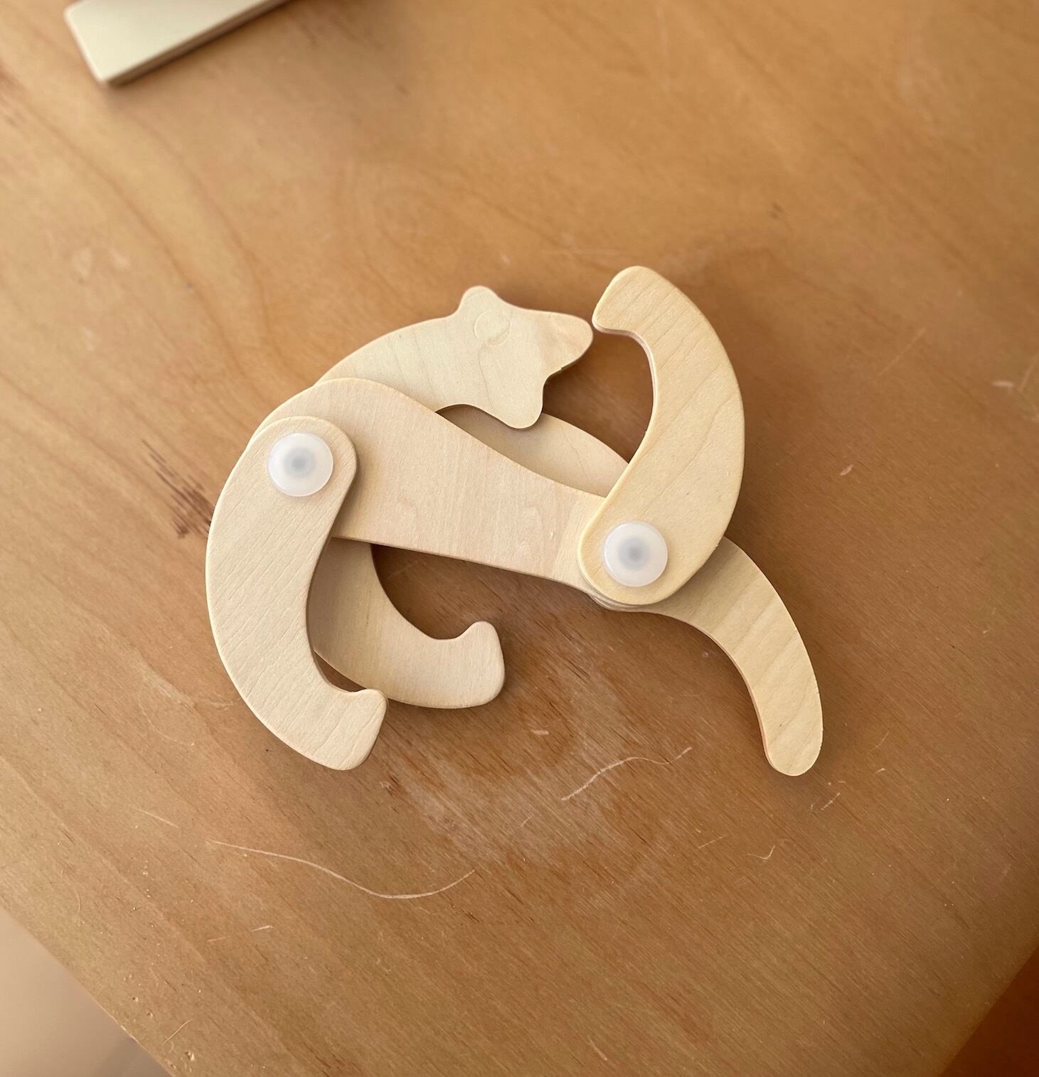 昭和世代の方ならよくご存知の、黄色の折りたたみの定規、折り尺などとも呼ばれますが、そこからヒントを得たようなおもちゃです。