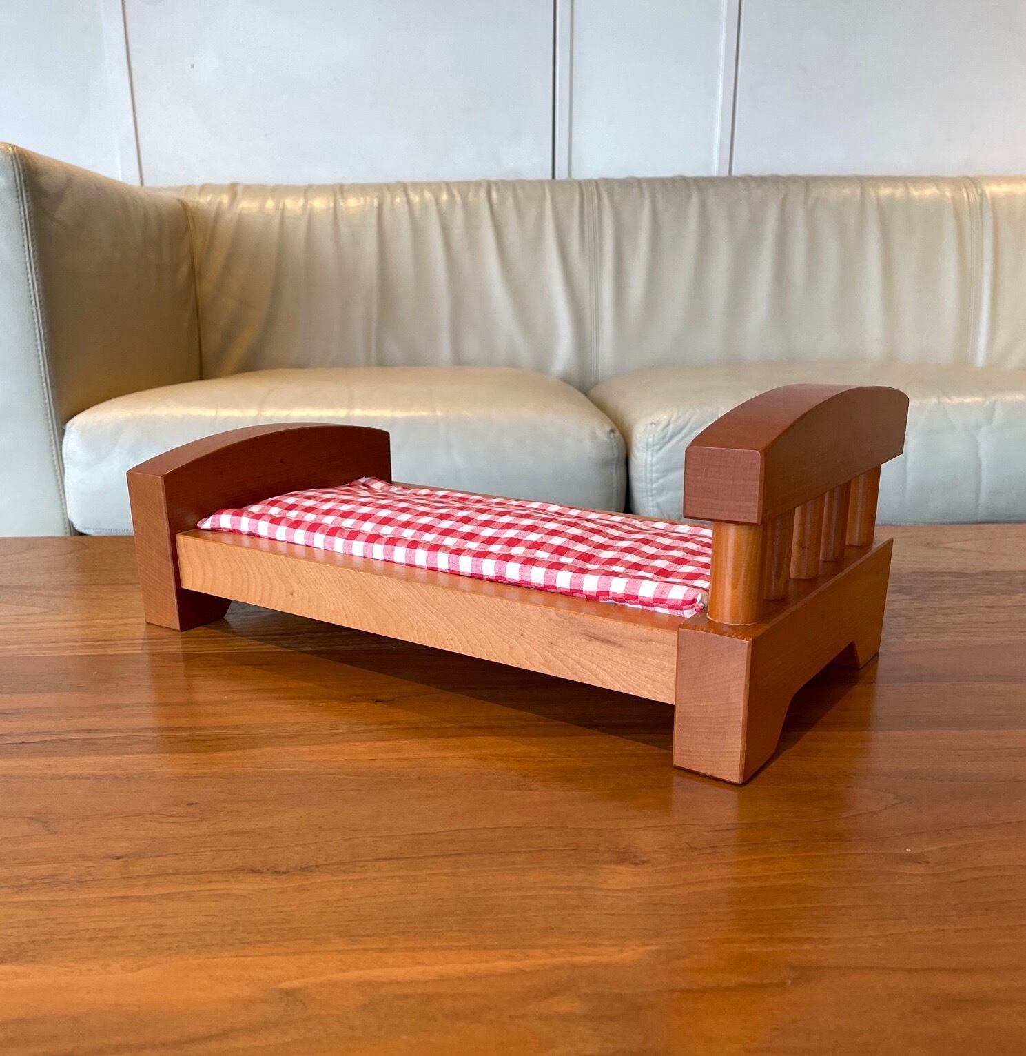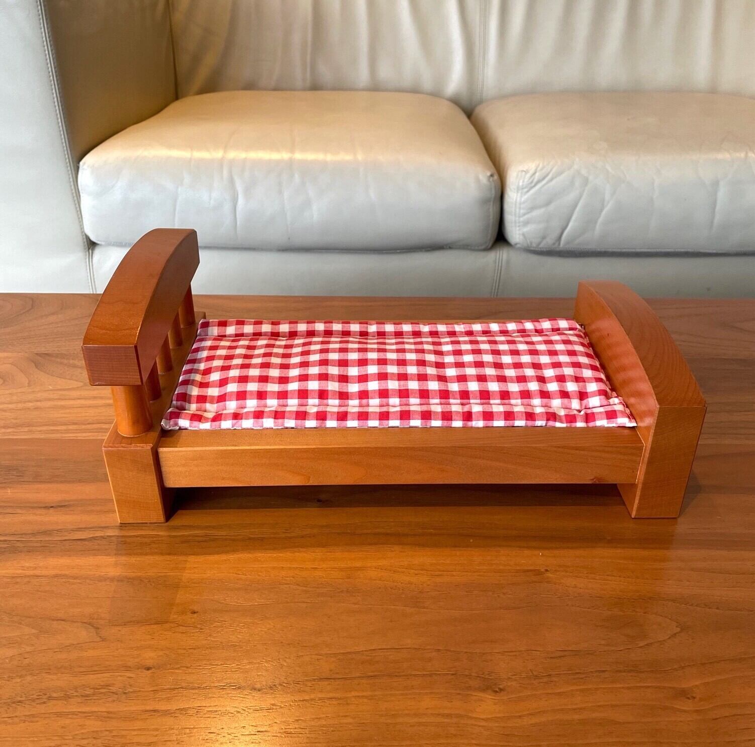 このベッドに合わせて作ったチェックの布団も付きます。