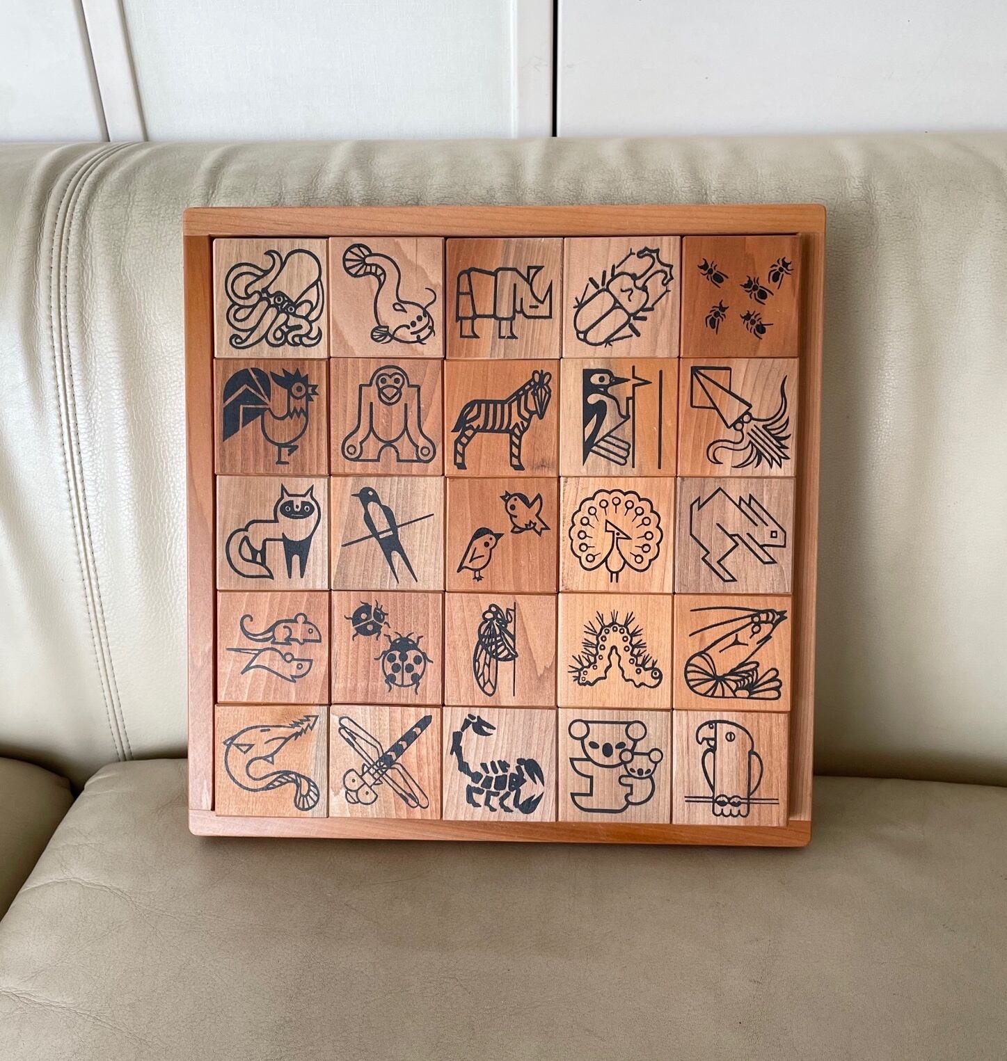 ひらがなつみきの最高傑作、動物いろはつみきの40年以上前のほぼ未使用の保管品です。