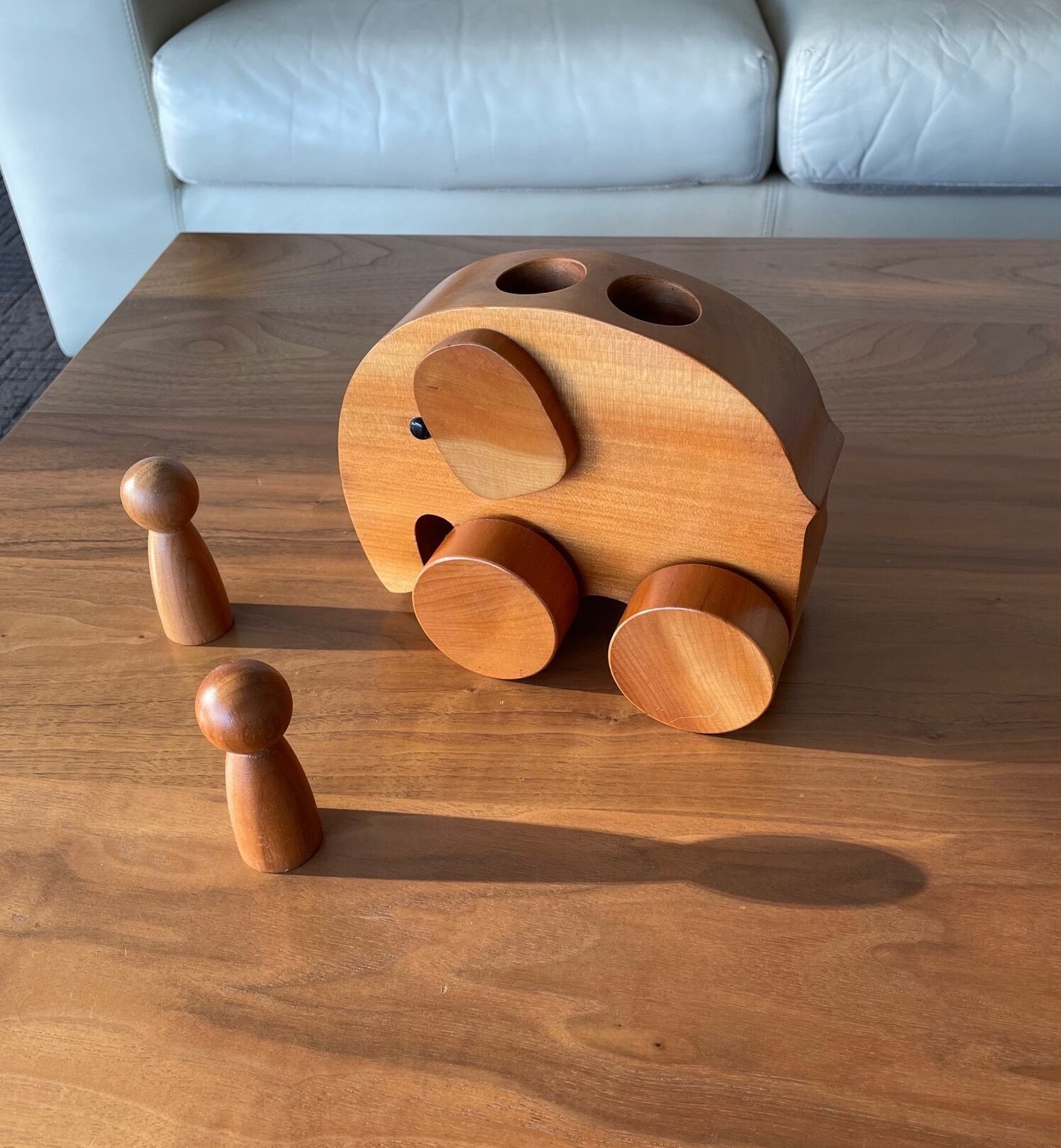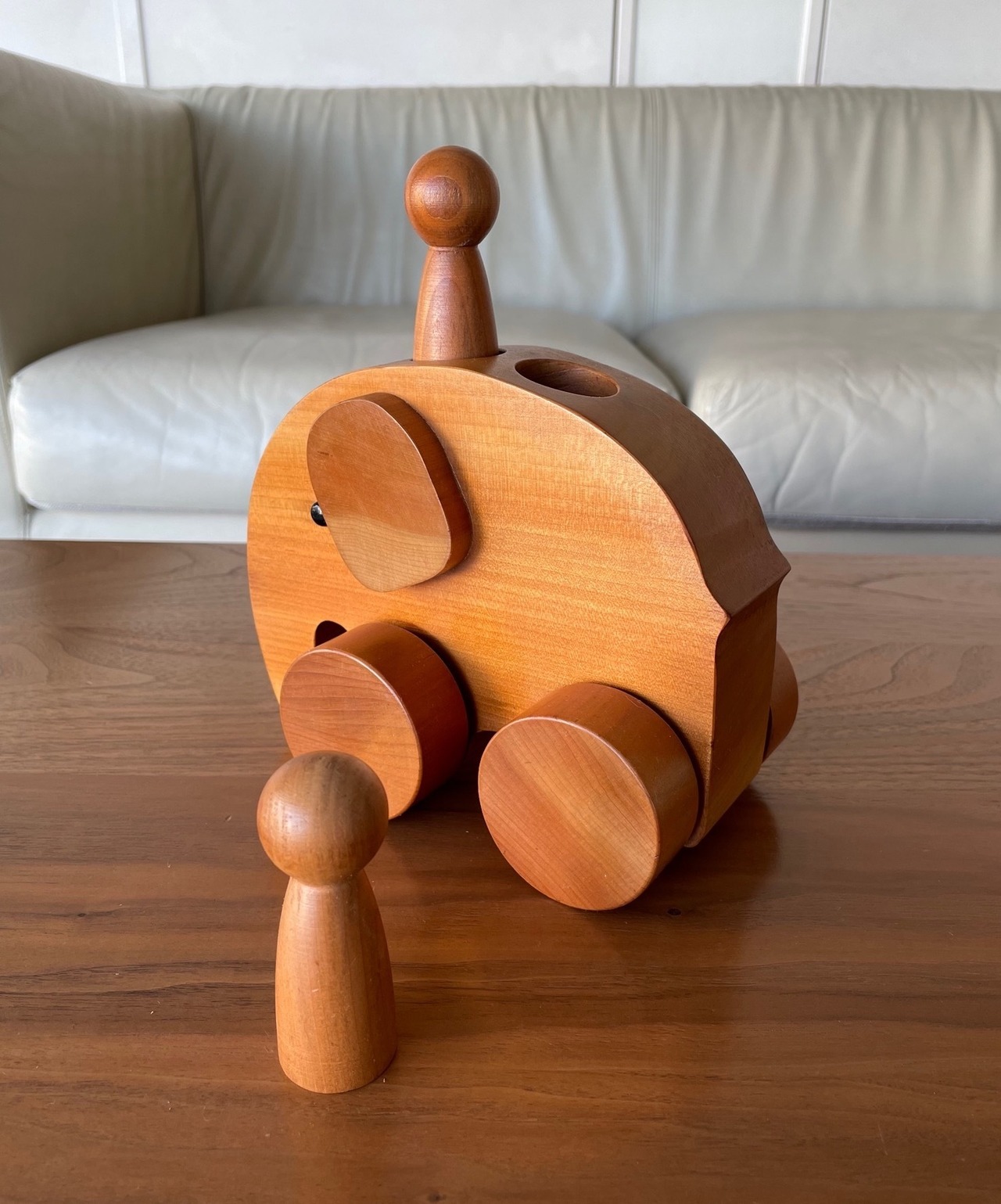 北海道のカツラの大木から作ったゾウのおもちゃ。