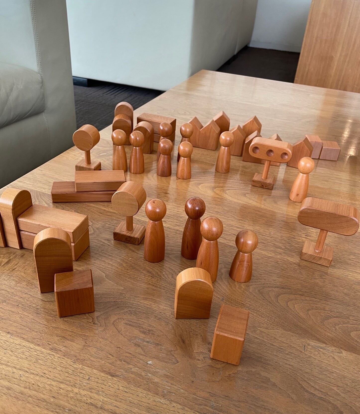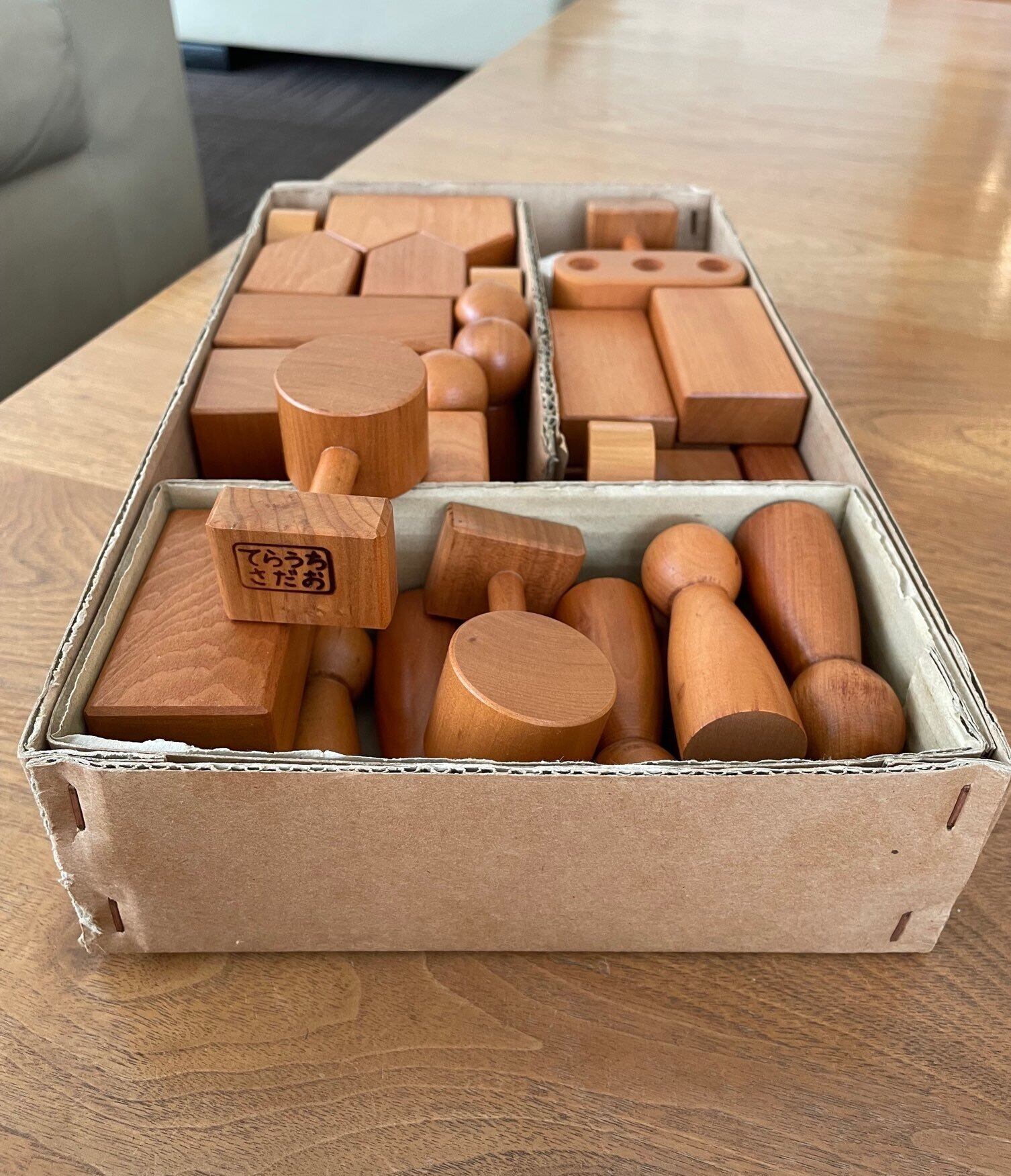 この町づくりつみきは、およそ制作から40年前後経過しているヴィンテージ品で、カツラ材特有の経年美化が進んできておりとても美しい風合いになっています。