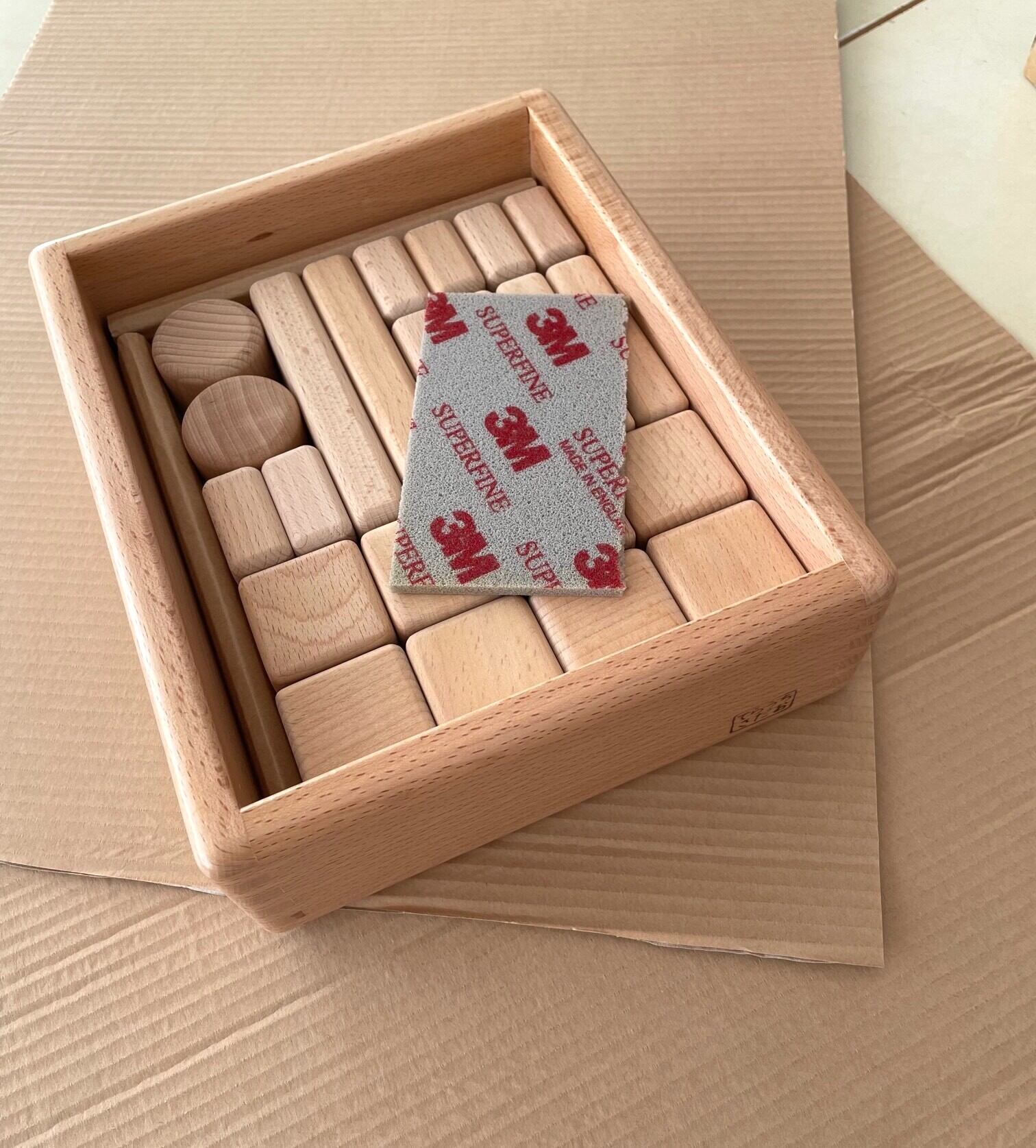 ただ、あかちゃんは特につみきを舐めてしまうので、無塗装仕上げだと表面がガサガサになりやすいという欠点もあります。