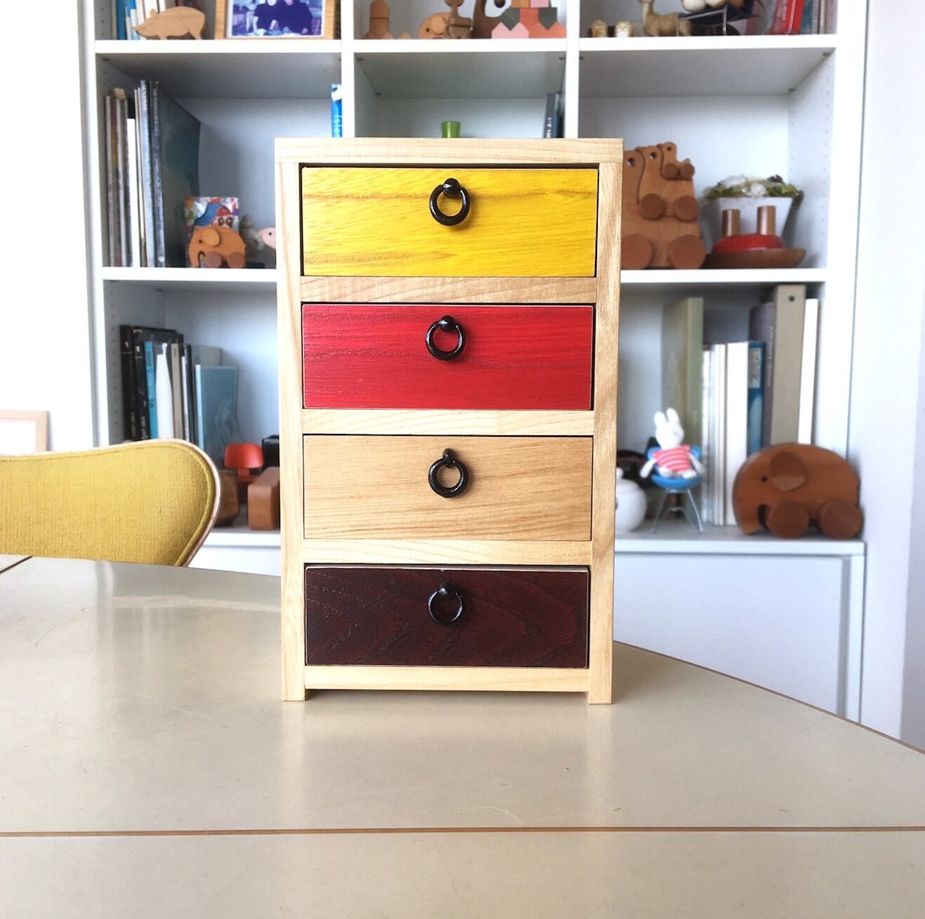 日本初のおもちゃデザイナー、寺内定夫デザインの「ごっこのひきだし」を更にカラフルに進化させました。
