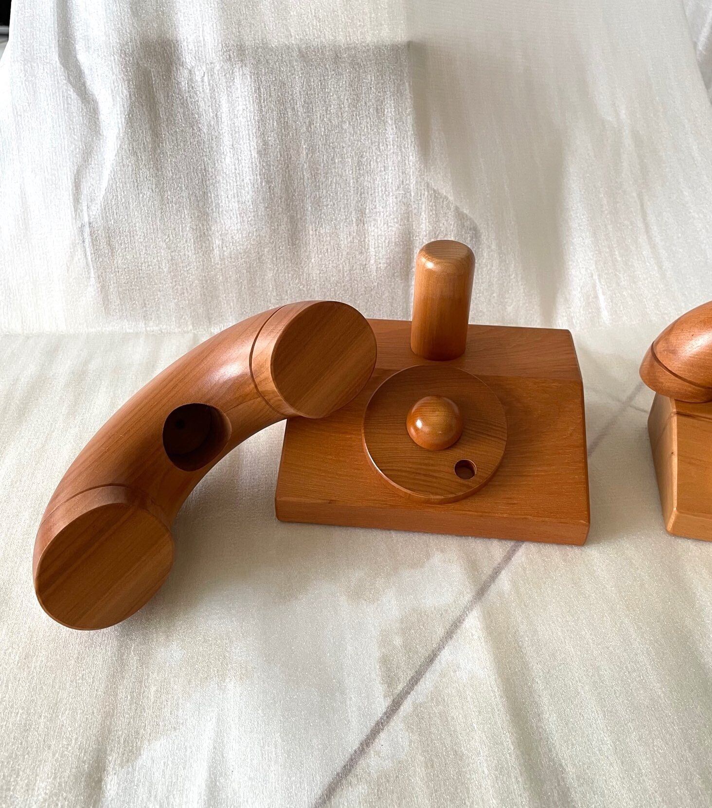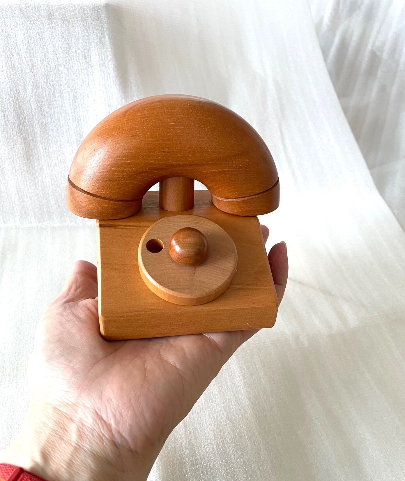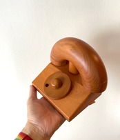 昔懐かしいダイアル式の電話(黒電話)をモチーフにした木のおもちゃです。