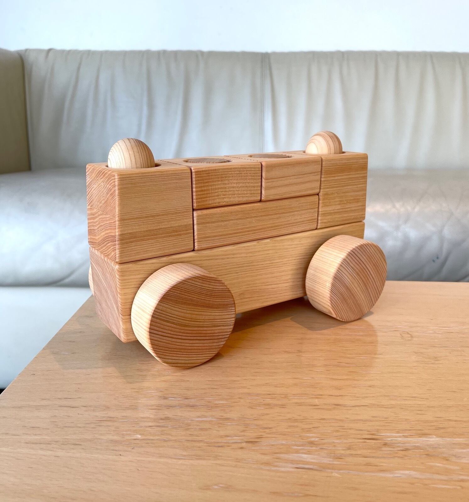 組立車は、トラックやバスなどの具体性がない分、いろいろな見たて遊びの幅が広がります。