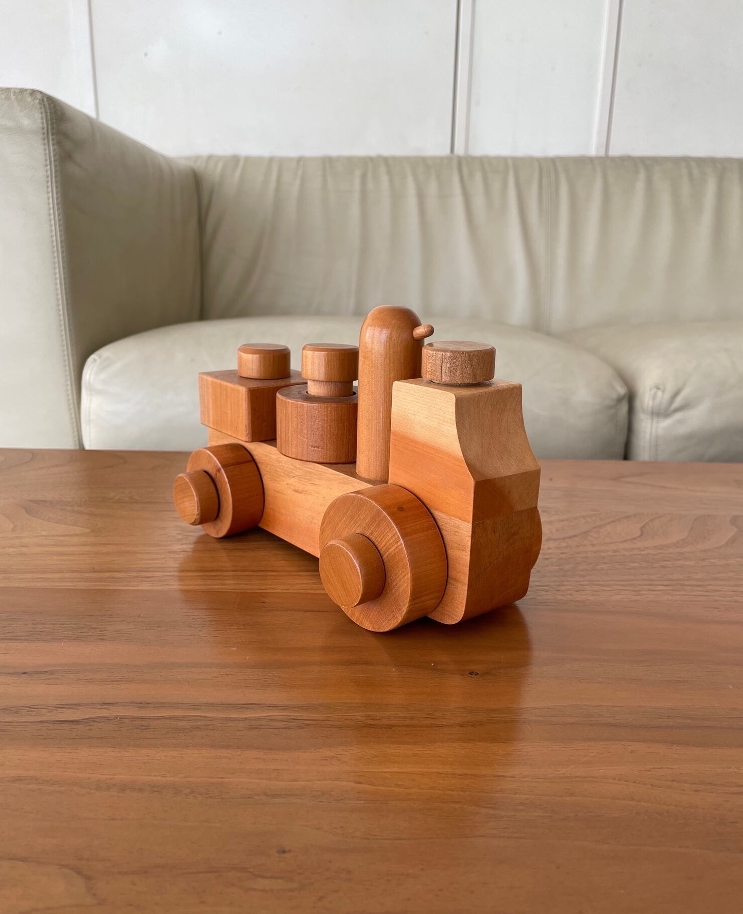 1970年代半ば頃に、岩手県から地産地消の木を使ったプロダクトのデザイン、開発を依頼されて作った木のおもちゃの一つです。