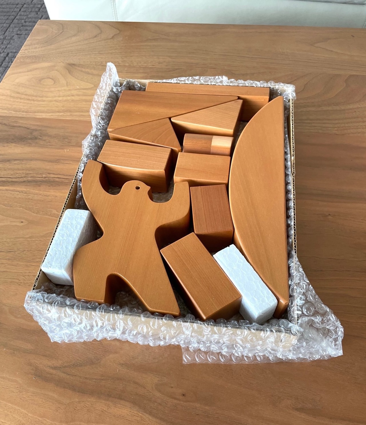 40年〜50年の時が経過しているとは思えない、国産の木の美しさと、決して昭和レトロとはならない高いデザイン性があり、子供に遊ばせるよりアートオブジェとして鑑賞していただきたい商品です。