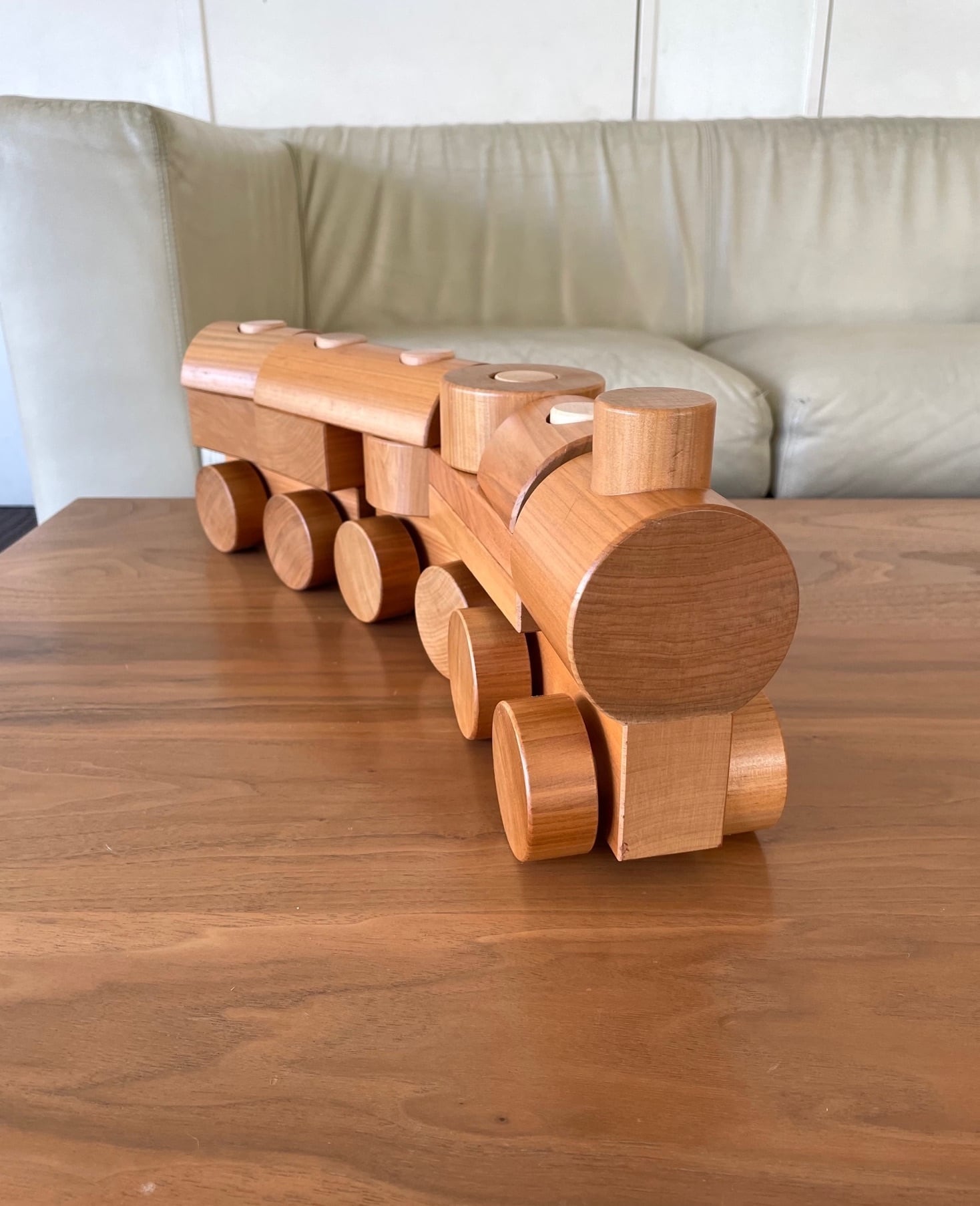 こちらはその汽車つみきの、カツラ材で生産した最後の方の商品でおよそ20年近く前の中古品をリペアしたものです。