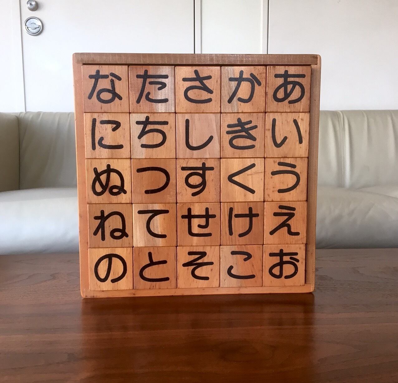 始めは普通に積み木として遊び、それから文字、ことば遊びになる知育玩具です。